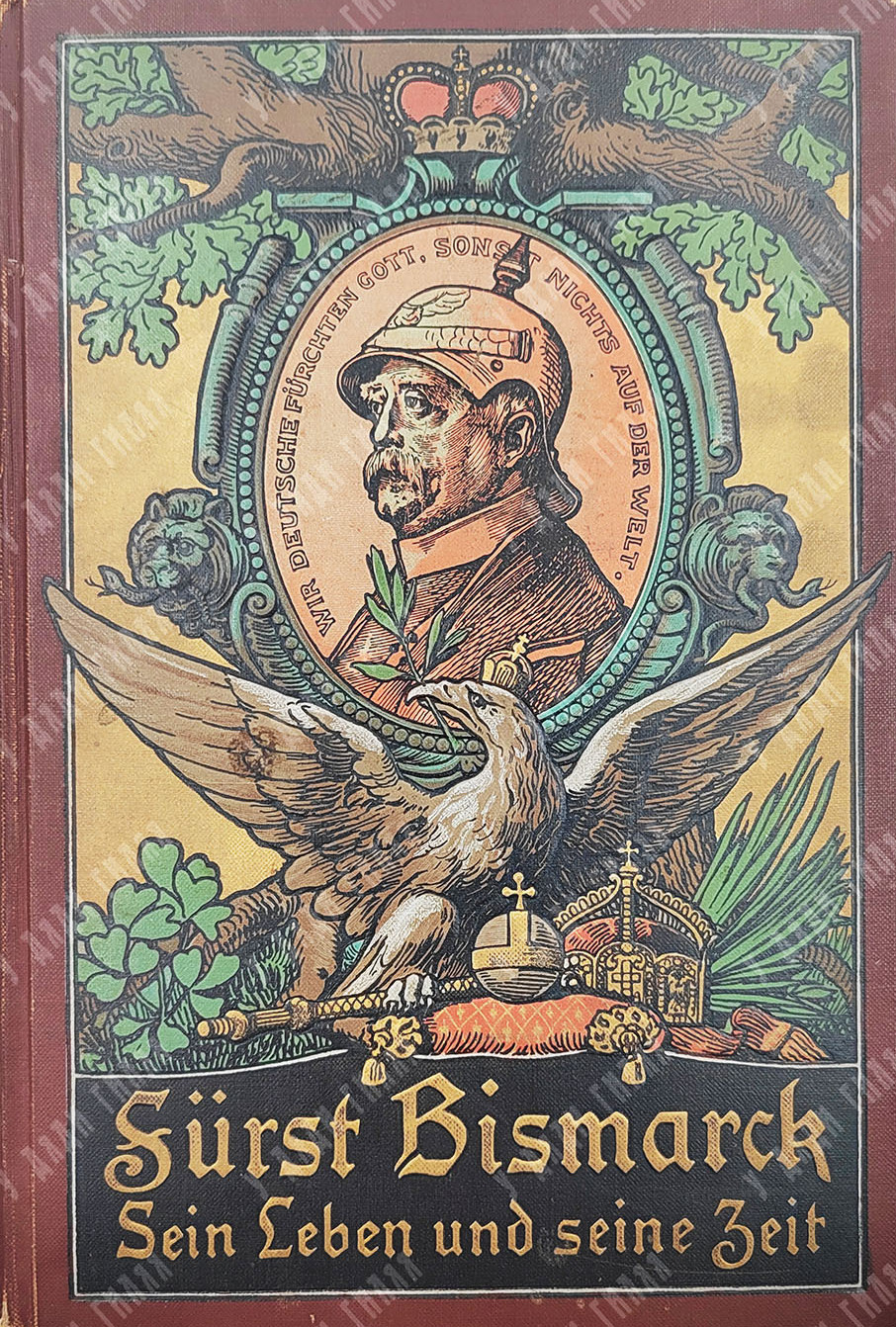 Книга на немецком языке. Книга представляет собой подробную биографию выдающегося политического деятеля XIX века Отто фон Бисмарка (1815–1898). Главной заслугой Бисмарка стало создание единого германского государства путем присоединения к Пруссии других немецких земель и более мелких разрозненных территорий. За время своего нахождения на посту министра-председателя правительства Пруссии провел также ряд реформ, направленных на реорганизацию армии, укрепление общегерманского рынка, и создания условий для упрочнения положения Германии среди мировых держав в сфере внешней политики. Текст набран изящным готическим шрифтом и дополнен множеством полностраничных иллюстраций и фотографиями Бисмарка в разные годы.