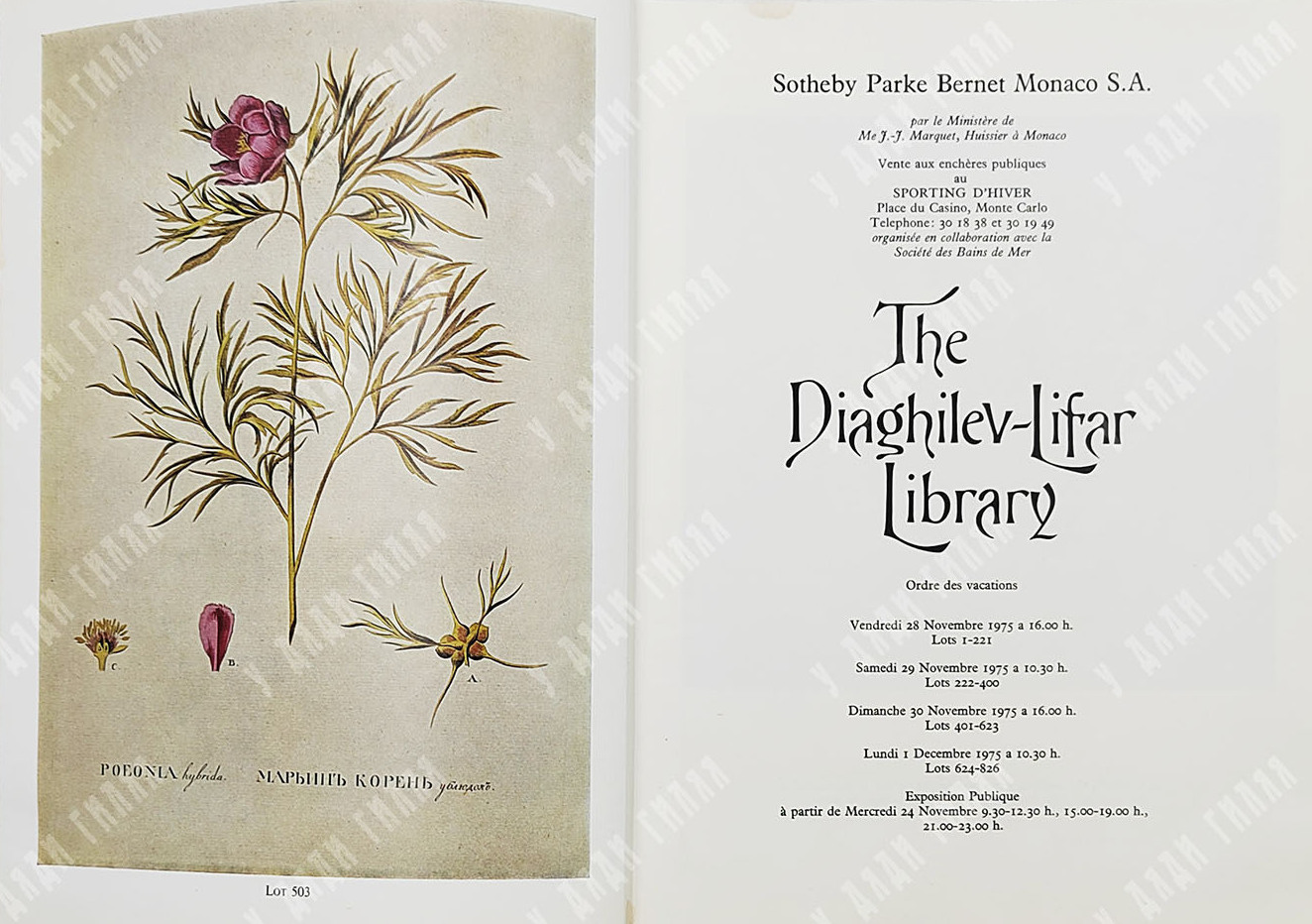 6. The Diaghilev-Lifar Library. Auction catalogue November 28 – December 1, 1975. Sotheby Parke Bernet Monaco S. A. / Библиотека Дягилева-Лифаря. Аукционный каталог Sotheby’s 28 ноября — 1 декабря 1975 г. — London: Robert Stockwell Ltd., 1975.