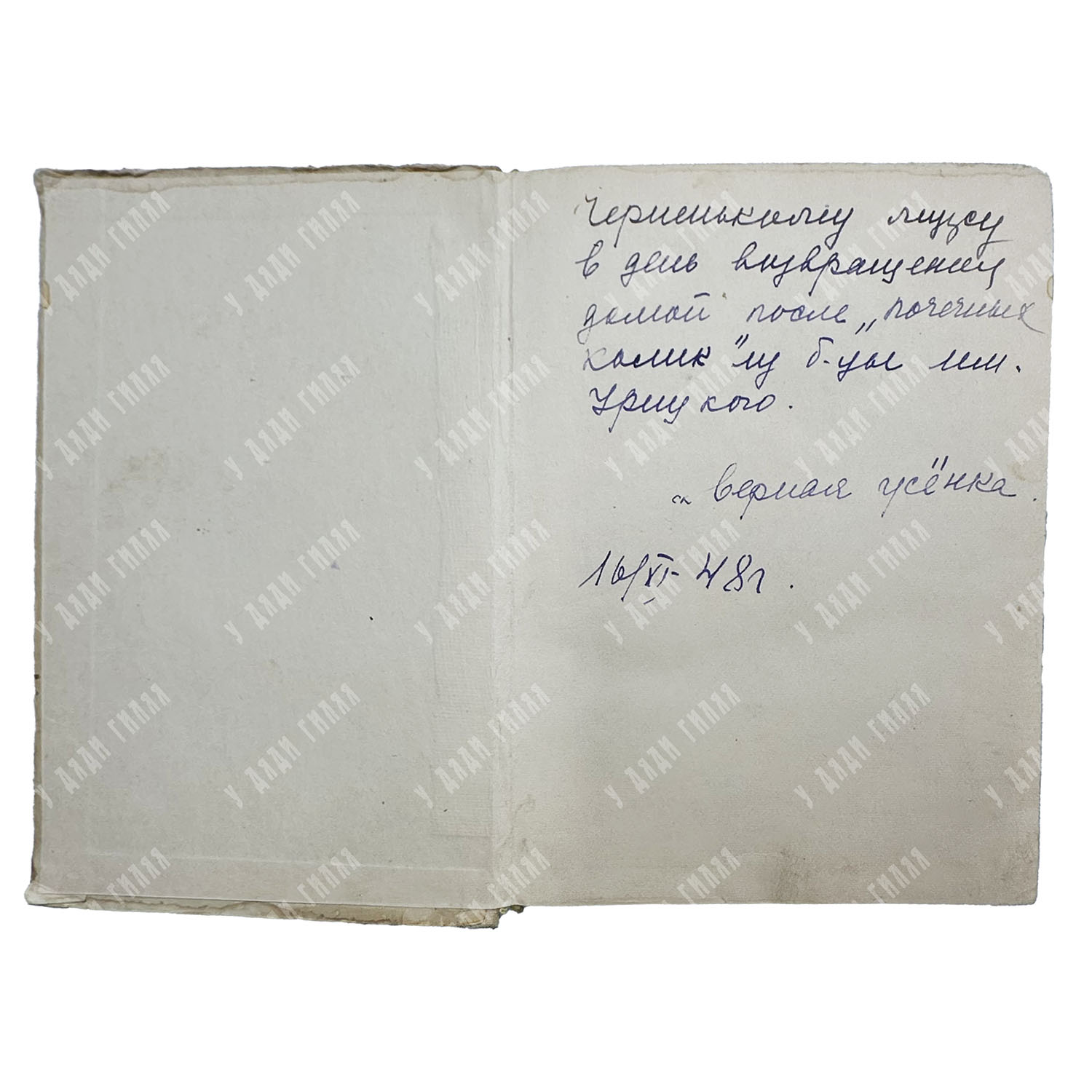 Лот обладает уникальным человеческим провенансом, зафиксированным на форзаце. Трогательная дарственная надпись: «Черненькому лицу в день возвращения домой после „почечных колик“ из б-цы им. Урицкого. Верная усёнка. 16/XI-48 г.» — превращает книгу в интимное свидетельство эпохи. Тот факт, что книга была подарена в год ее официального осуждения, подчеркивает ее особую ценность для владельцев. На международном рынке лот позиционируется как «Suppressed Soviet Classic» (запрещенная советская классика), представляющая как литературный, так и глубокий историко-бытовой интерес.