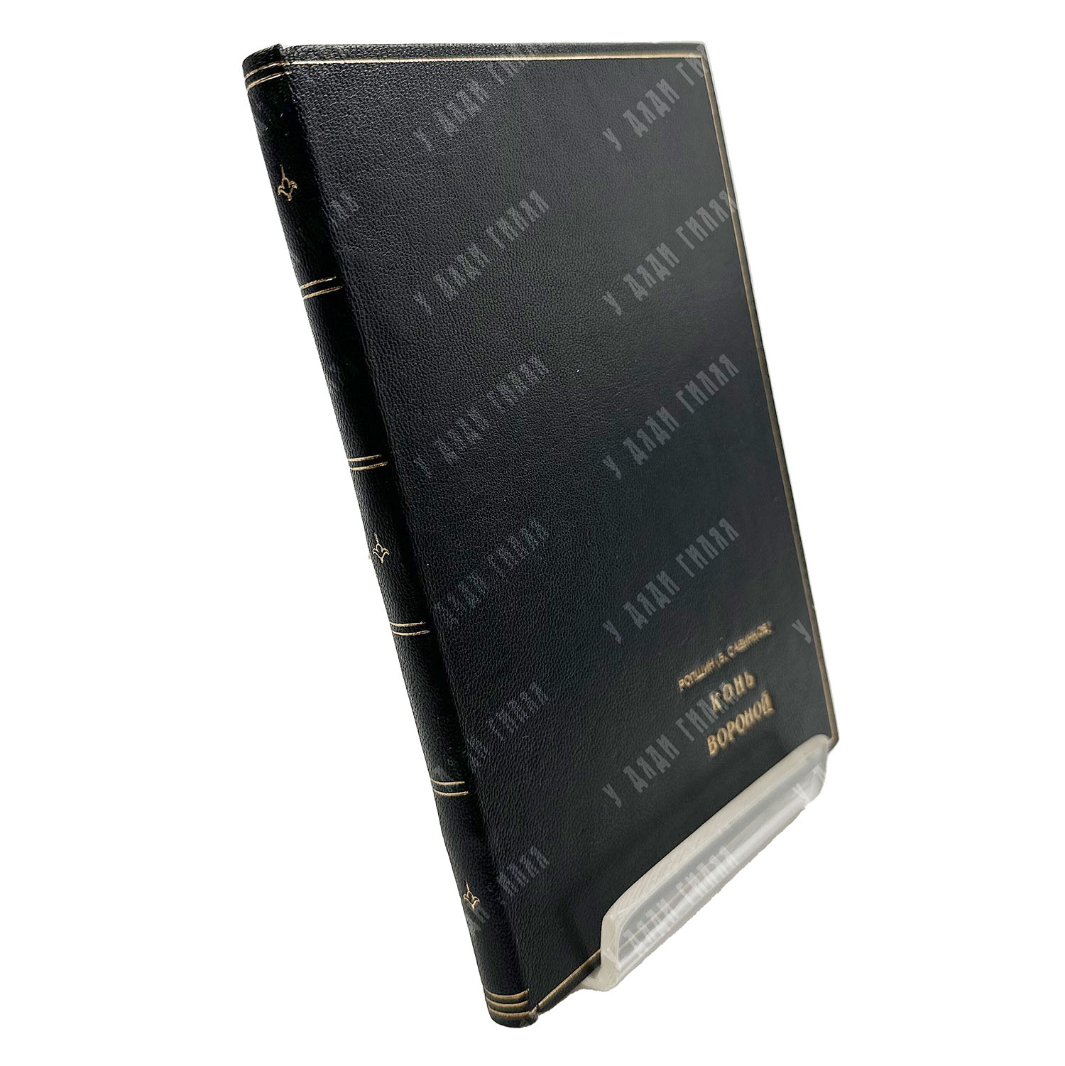 - Переплет: Владельческий цельнокожаный переплет с золотым тиснением; форзацы — бумага верже.