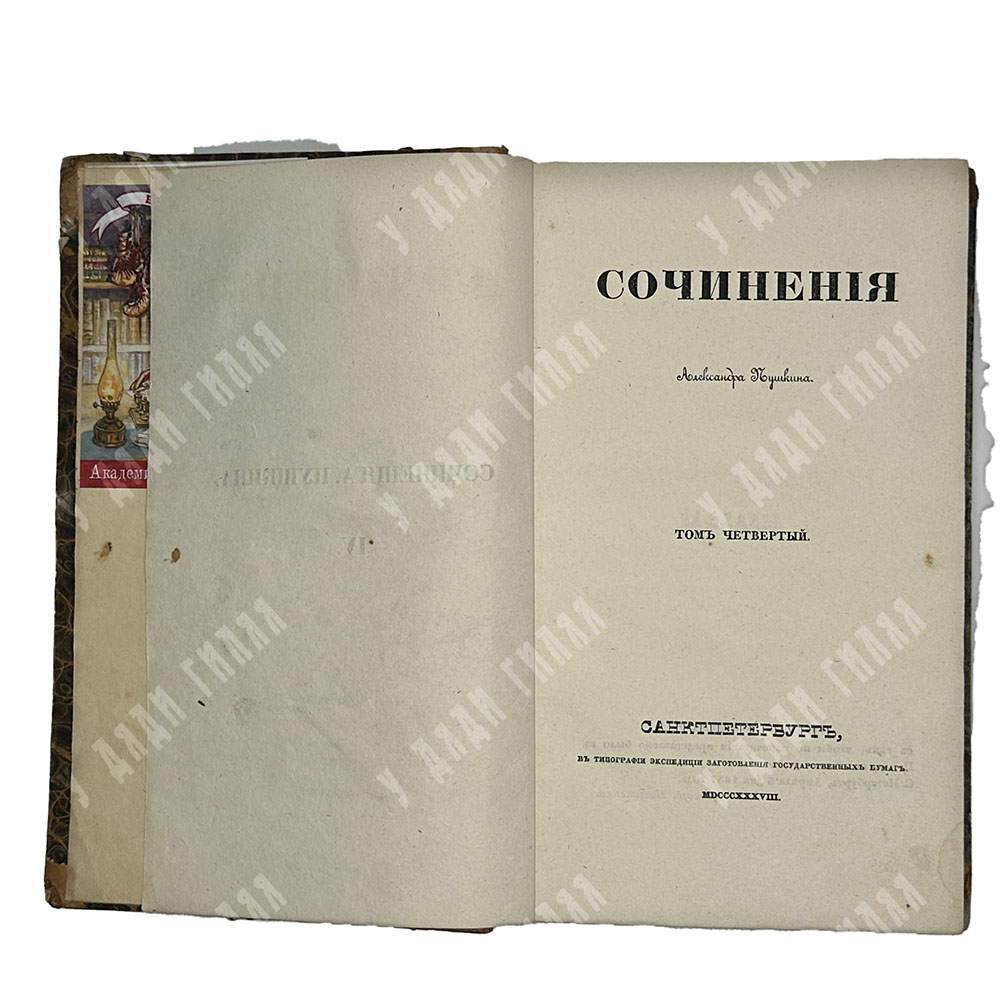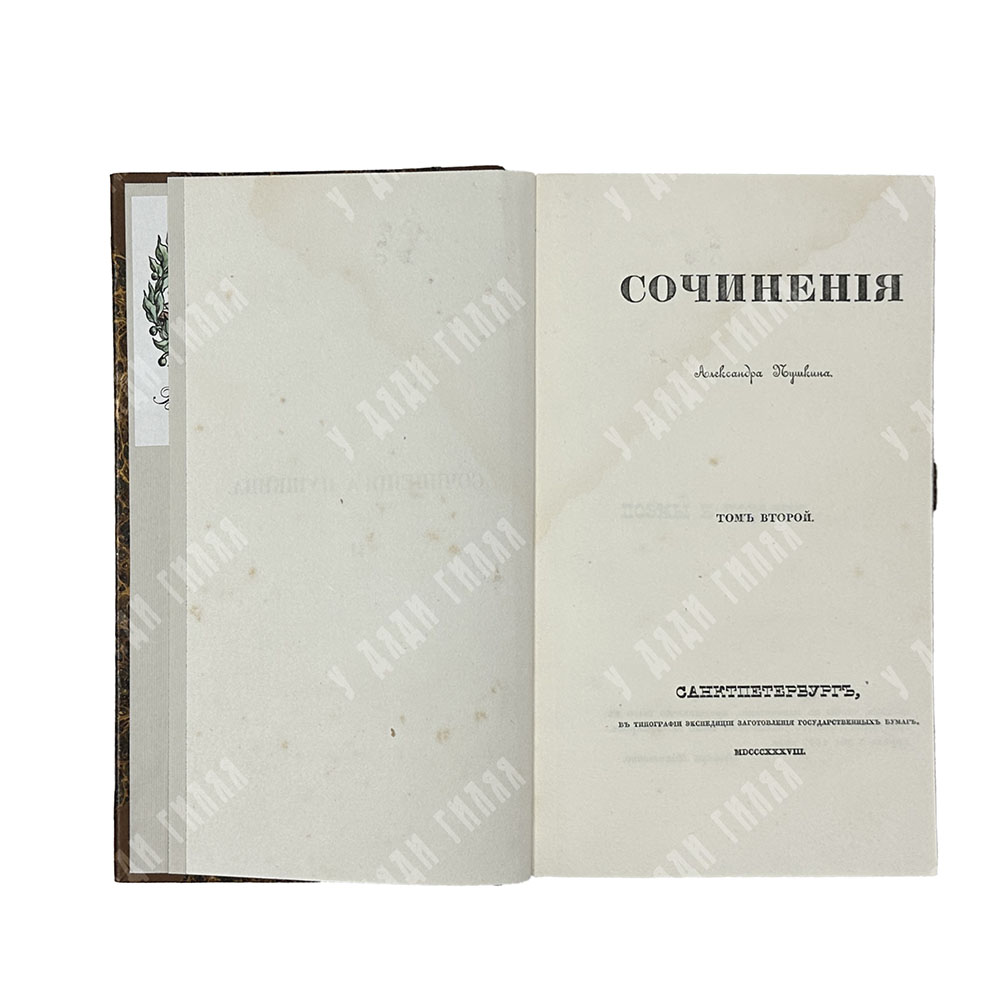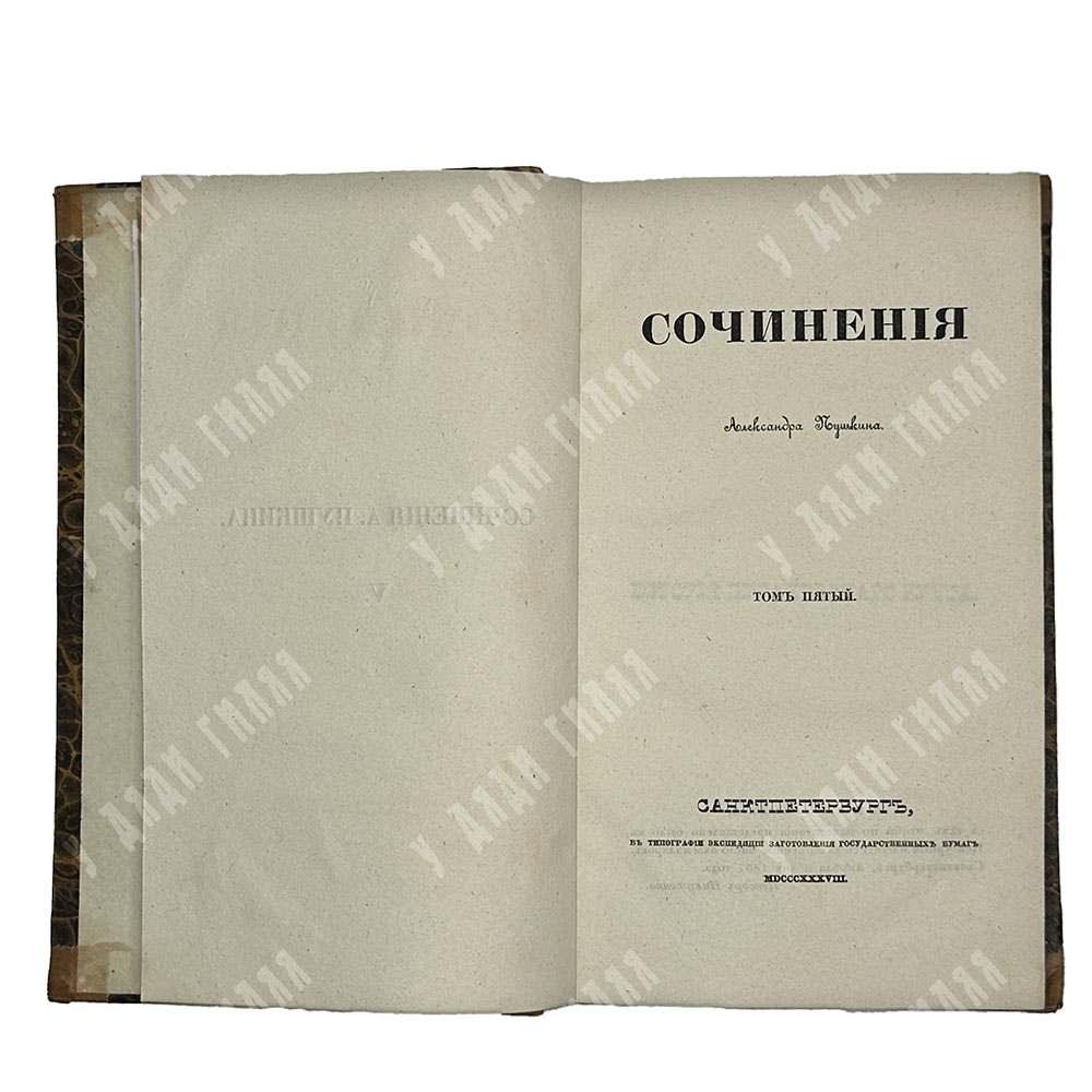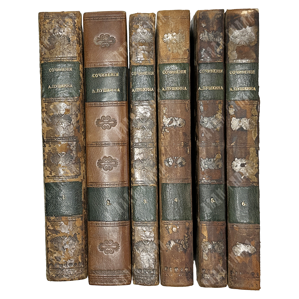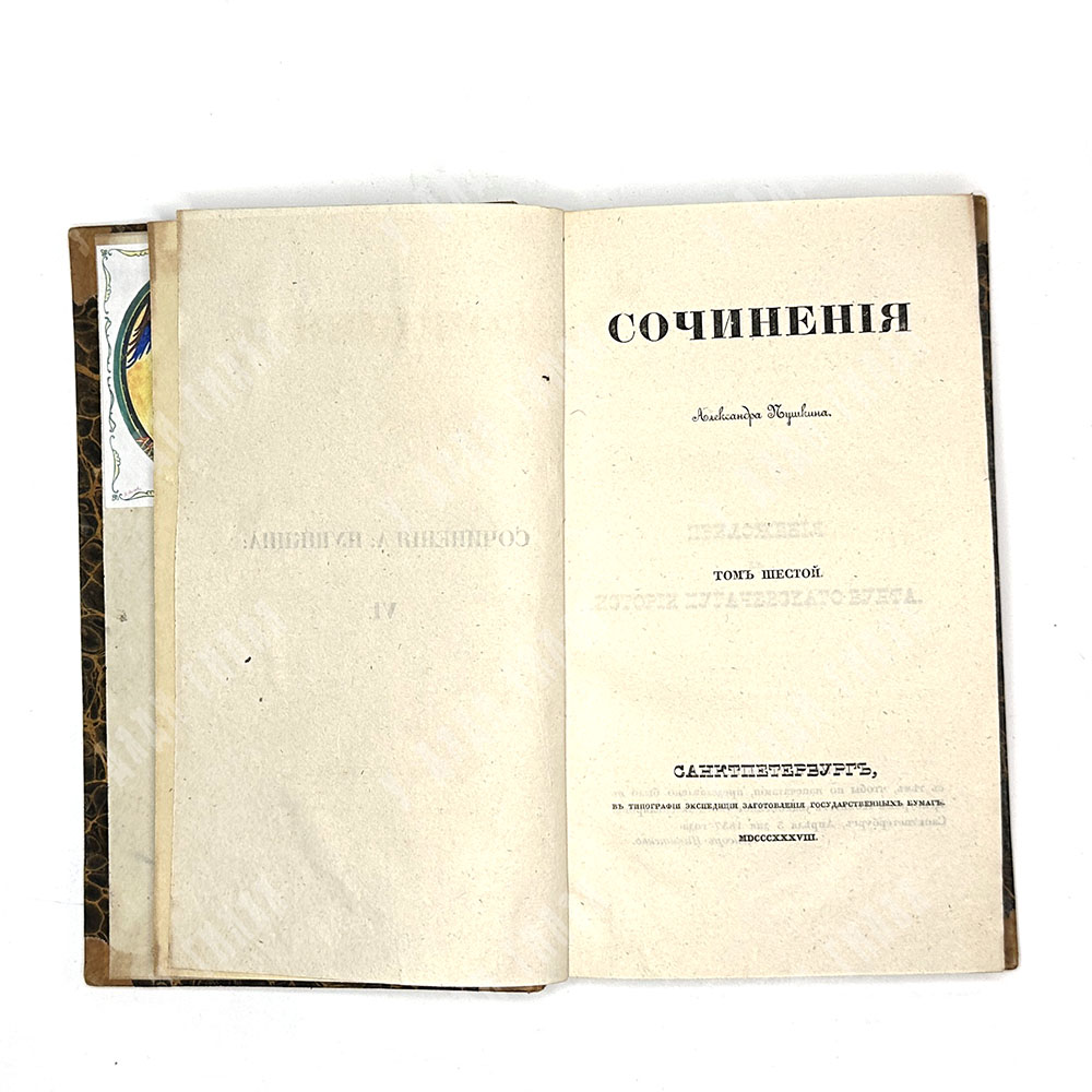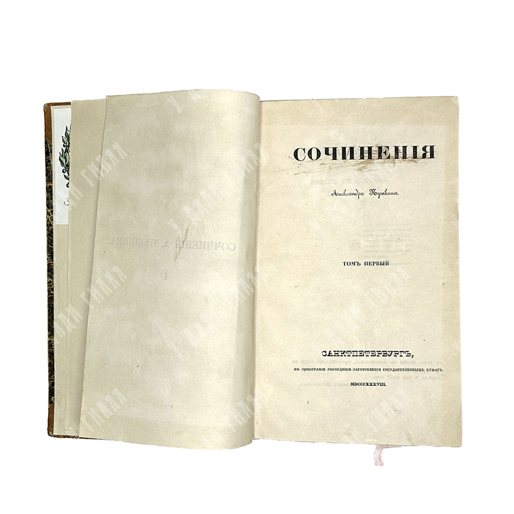 Первое посмертное и первое полное собрание сочинений А. С. Пушкина. Сочинения Александра Пушкина. В 8 томах (комплект первого выпуска). СПб.: Тип. Экспедиции заготовления государственных бумаг, 1838–1841.