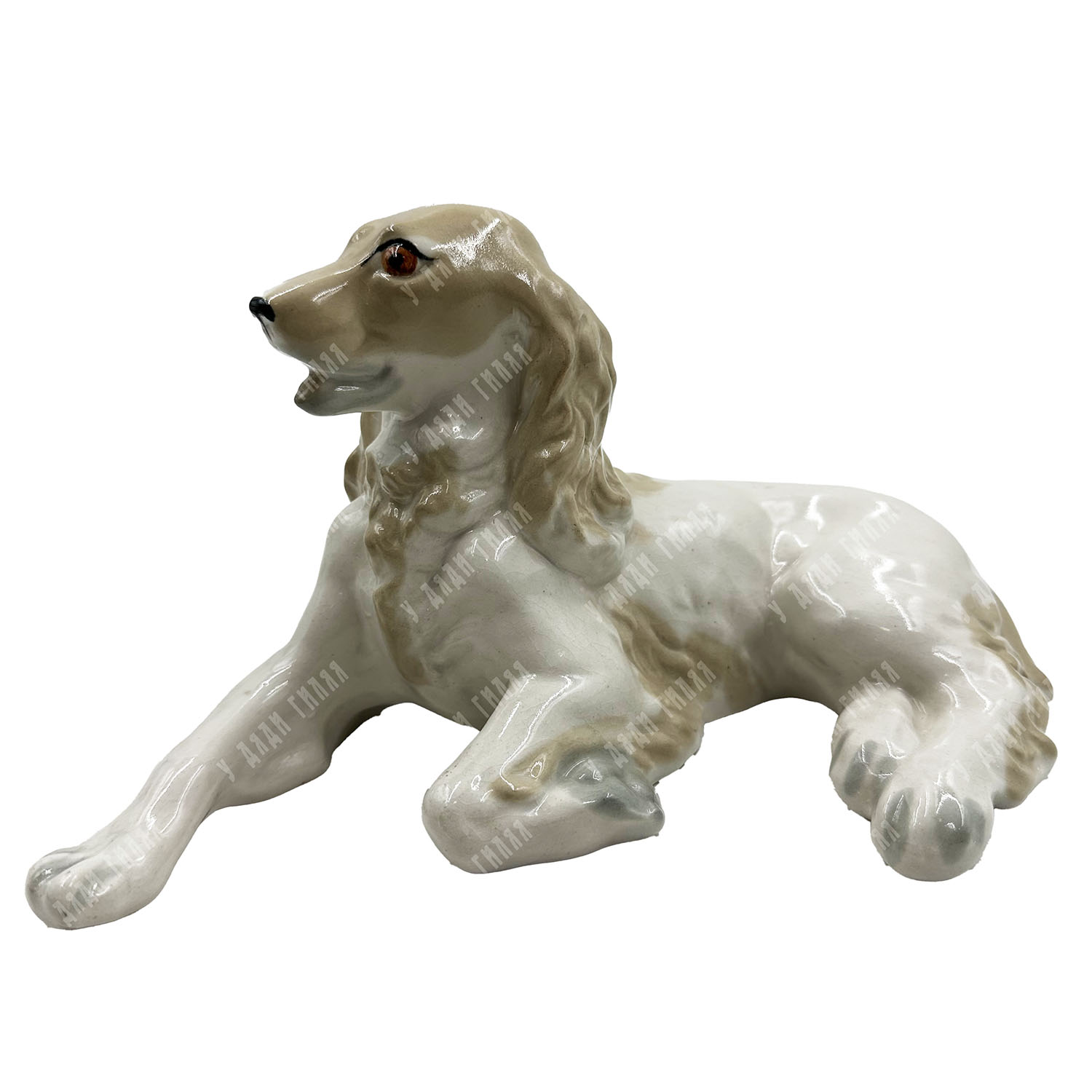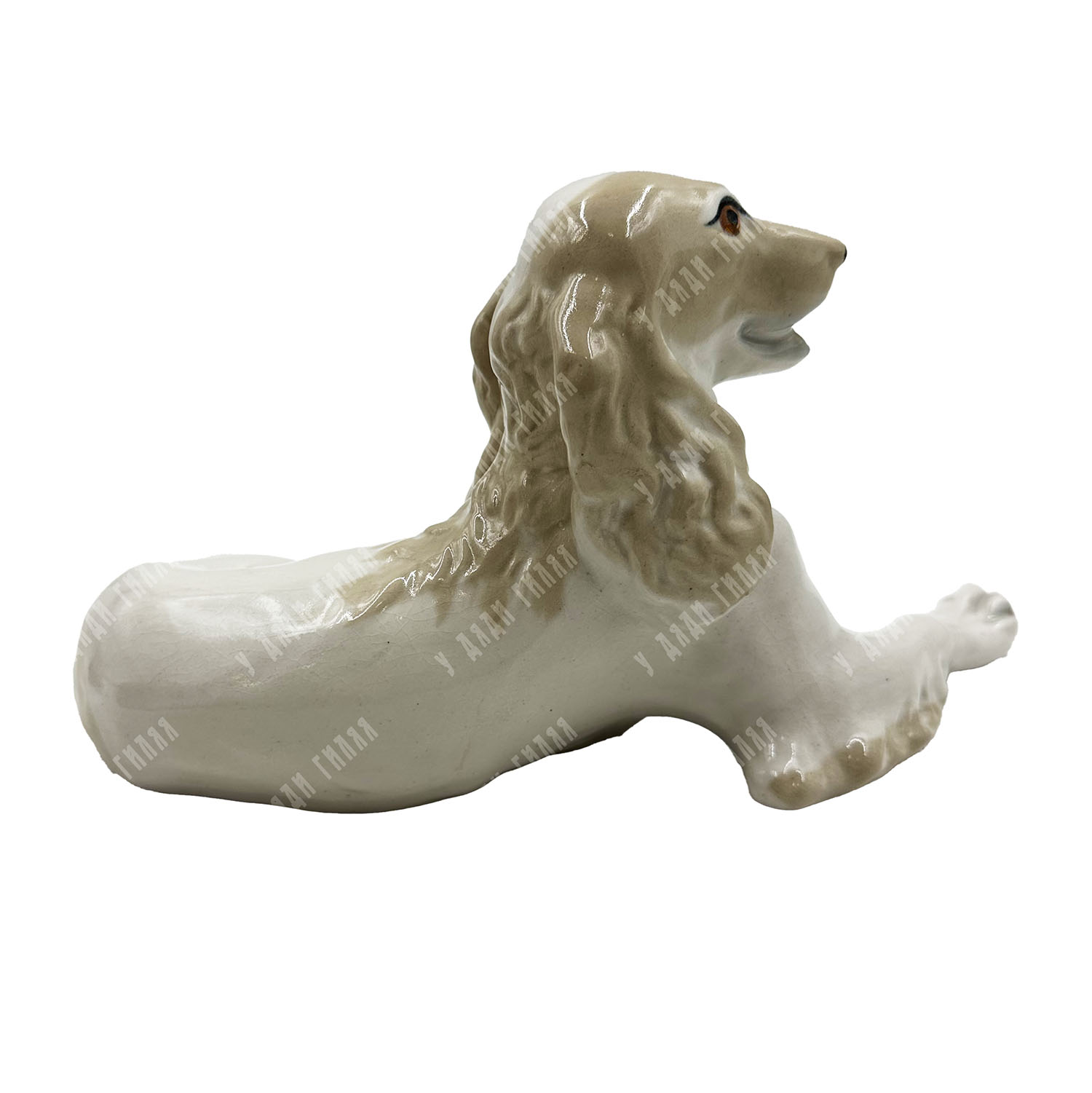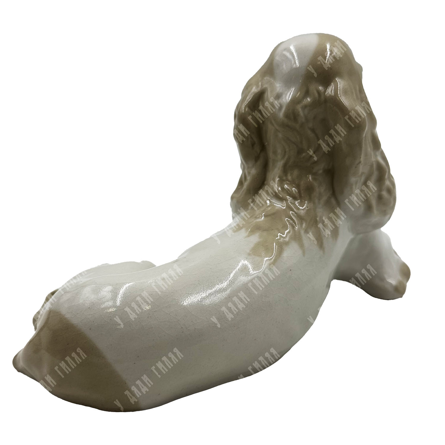 В антикварном салоне «У дяди Гиляя» представлена характерная работа ленинградских мастеров-анималистов. Скульптура «Спаниель» выполнена в мягкой, обтекаемой манере, свойственной эстетике 1960-х годов. Мастерски переданная поза отдыхающей собаки и добродушное выражение морды делают эту работу образцом теплой советской пластики малых форм. Тонкие переходы пастельных цветов подчеркивают фактуру шерсти, сохраняя лаконичность образа.