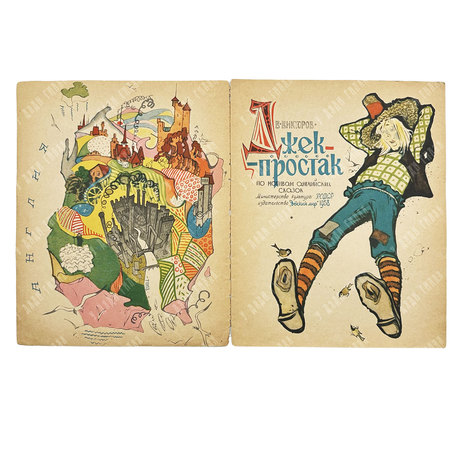 Редкое малотиражное издание конца 1950-х годов, представляющее собой вольный стихотворный пересказ популярного сюжета английского фольклора. Книга является одной из ранних и наиболее ярких работ в детской литературе Вениамина Лосева — признанного мастера советской графики и карикатуры. Художник создает эксцентричный и динамичный образ главного героя, используя смелые ракурсы и сочную цветовую гамму, что идеально гармонирует с остроумным текстом Виктора Викторова. Издание выпущено в период расцвета книжки-картинки, когда оформлению детской литературы уделялось внимание на уровне высокого искусства.